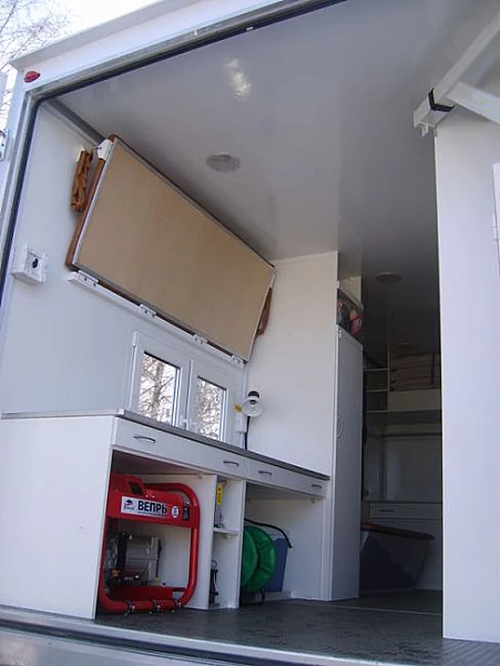 Лаборатория связи предназначена для  доставки специального оборудования и бригады к местам проведения ремонтных и профилактических работ, выполнения, в любых природно-климатических условиях, мероприятий по поиску и устранению повреждений волоконно-оптического кабеля.