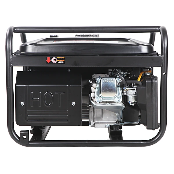 Прочная рама надежно защищает бензогенератор от повреждений. Двигатель установлен на толстых резиновых подушках, которые отлично гасят вибрации. Техническое обслуживание агрегата максимально упрощено - воздушный фильтр, маслозаливная горловина и другие узлы, периодически требующие внимания, расположены на видном месте с хорошим доступом.