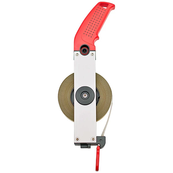 Эргономичная ручка выполнена из прочного ABS пластика и обладает специальным покрытием, благодаря чему рулетка не выскальзывает из рук. Специальная форма рукоятки позволяет работать с рулеткой длительное время без чувства дискомфорта. Она может перемещаться в левое и правое положение, что обеспечивает удобство пользования правой и левой рукой, избегая заказа специальной модификации.