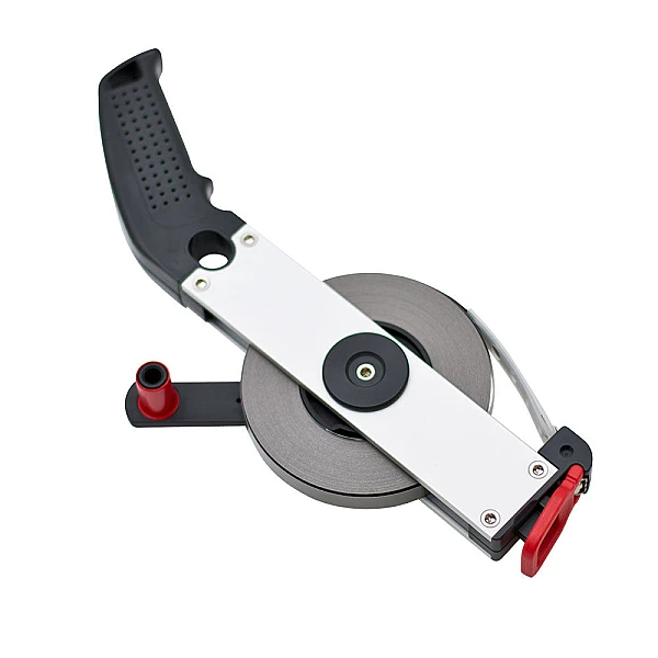 Эргономичная ручка выполнена из прочного ABS пластика и обладает специальным покрытием, благодаря чему рулетка не выскальзывает из рук. Она может перемещаться в левое и правое положение, что гарантирует удобство пользования правой и левой рукой, избегая заказа специальной модификации. Специальная форма рукоятки позволяет работать с рулеткой длительное время без чувства дискомфорта.