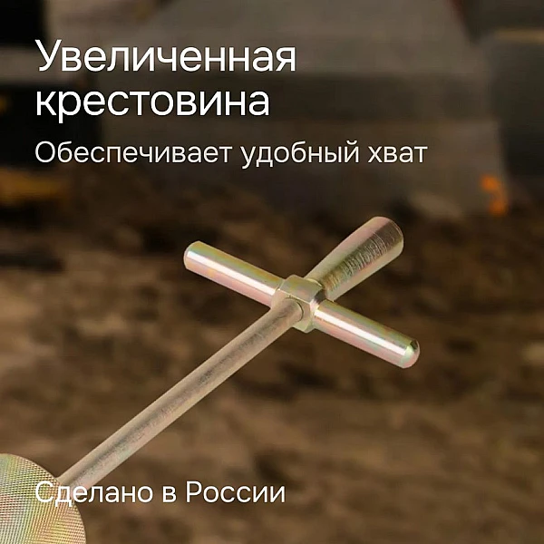 Инструмент от RGK выгодно отличается от аналогов рядом конструкционных особенностей, которые делают работу с ним более производительной и комфортной. Так, особое внимание было уделено рукоятке, благодаря чему достигается максимально удобный хват, особенно при работе в перчатках. Гиря не выскальзывает из рук за счет долговечных рельефных насечек. Стержень, наконечник которого дополнительно закален, выполнен в виде единой неразъемной детали, которая без проблем выдерживает нагрузку.