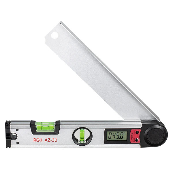 Электронный угломер RGK AZ-30 - способен измерять значения углов до 225° с выведением результатов на цифровой дисплей. С помощью угломера вы можете измерить как абсолютные угловые значения, так и относительные.