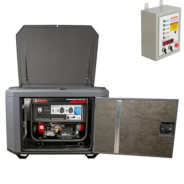 Купить Генератор A-iPower A8000EAX в тихом зимнем кожухе 1200 RAL 7024 + блок автозапуска A-iPower 400 В, 25 А в Кемерово легко — просто позвоните по телефону: 8-800-551-11-01