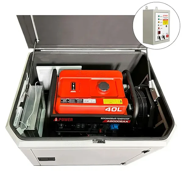 Генератор A-iPower A9000EAX в тихом зимнем кожухе 1200 RAL 7035 + блок автозапуска A-iPower 230 В, 50 А
