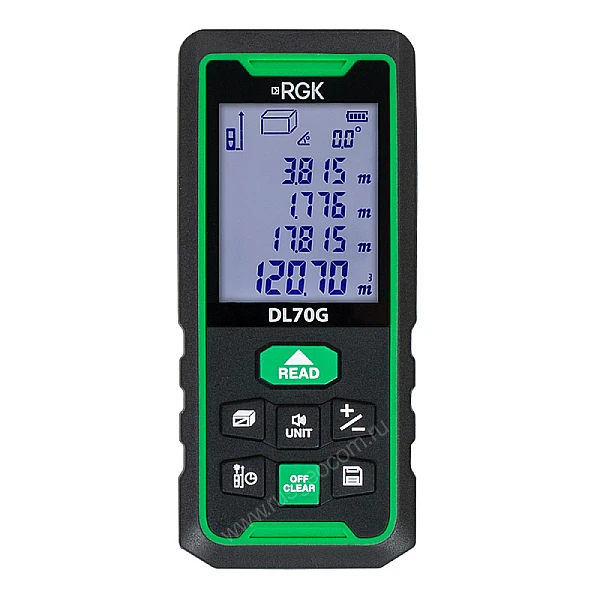 Купить Лазерный дальномер RGK DL70G - зеленый луч в Кемерово легко — просто позвоните по телефону: 8-800-551-11-01