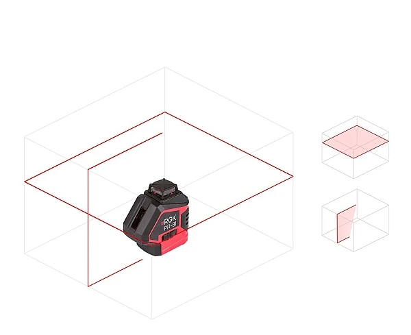 У лазерного нивелира RGK PR-81 есть возможность переключения режима отображения линий путем нажатия соответствующей кнопки. Всего предусмотрено три режима: