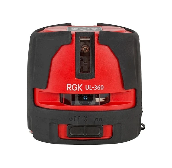 Лазерный уровень RGK UL-360 — компактный и удобный построитель плоскостей, проецирующий 2 горизонтальные линии с развёрткой 360° и 2 вертикальные — с углом 240°. Линии могут отображаться как по отдельности, так и все 4 одновременно.