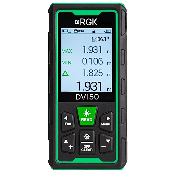 Лазерная рулетка rgk DV150 оснащена максимальным набором функций, которые помогут вам существенно повысить свою эффективность. Всё, что вам необходимо сделать - это нажать на соответствующую кнопку или выполнить несколько последовательных измерений.
