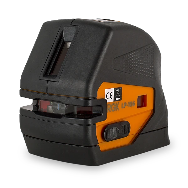 Лазерный нивелир RGK LP-106 очень прост и доступен в эксплуатации, работа с ним не требует специальной подготовки. Для выполнения разметочных работ на строительной площадке нивелир RGK LP-106 дополнительно может комплектоваться электронным детектором LD-8, который способен улавливать лазерный луч при любом освещении. Сразу же при включении прибор готов к работе: лазерный нивелир RGK LP-106 оснащен системой компенсации наклона прибора, основанной на простом и надёжном механизме магнитного маятника. Блокиратор компенсатора защищает механизм во время транспортировки, а так же позволяет строить наклонные плоскости. Устройство компенсирует отклонение от горизонтали в диапазоне 4°. Резьба крепления у LP-106 имеет диаметр ¼", для надежного крепления прибор на фотоштатив. Корпус прорезинен и разработан по современным стандартам, что позволяет защитить прибор от пыли, влаги, перепадов температуры. Прибор работает от трех батареек (аккумуляторов) типа АА, рабочее время при этом составляет более 10 часов.