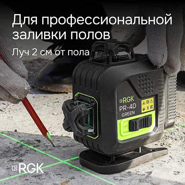 Купить Лазерный уровень RGK PR-4D Green с зеленым лучом в Кемерово легко — просто позвоните по телефону: 8-800-551-11-01