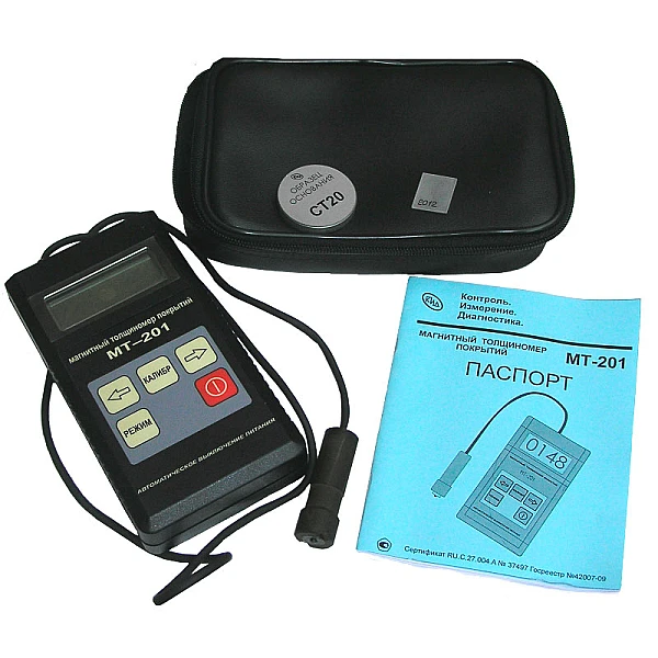 Толщиномер покрытий МТ-201М предназначен для измерения толщины покрытий на магнитных металлах в соответствии с ГОСТ Р 51694, ИСО 2808.