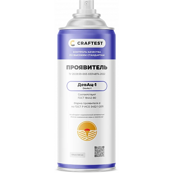 Проявитель КРАФТЕСТ ДевАц-1 имеет форму d (на основе раствора (неводного)), предназначен для проведения капиллярного контроля.