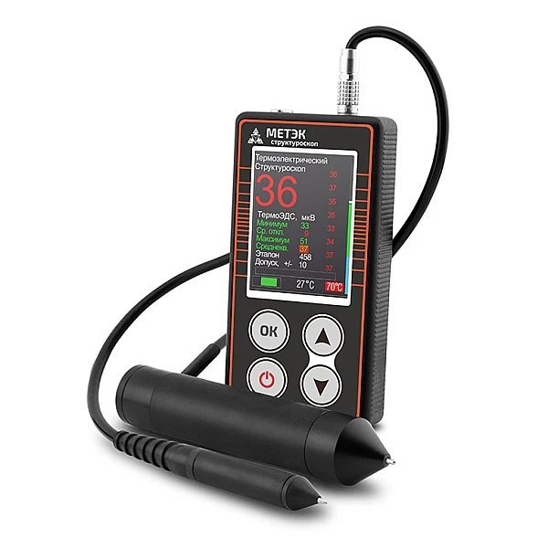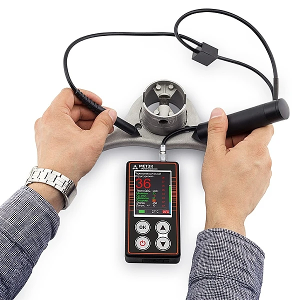Представленная модель – это наилучшее сочетание цены и качества. Развитый функционал, расширенные возможности, прочное исполнение и удобство в использовании делают его незаменимым помощником при проведении структуроскопии материалов. Обратите внимание, что в ходе работы с этим устройством будет существенно снижена тепловая нагрузка на руки оператора. Структуроскоп МЕТЭК компактен и портативен, что позволяет его применять для экспресс-контроля деталей без ограничения по размерам. Необходимость в их извлечении из изделия полностью отсутствует. В среднем на одно измерение уходит не более 6 секунд, а весит прибор чуть больше двухсот грамм. Может непрерывно эксплуатироваться без необходимости в подзарядке на протяжении двух часов.